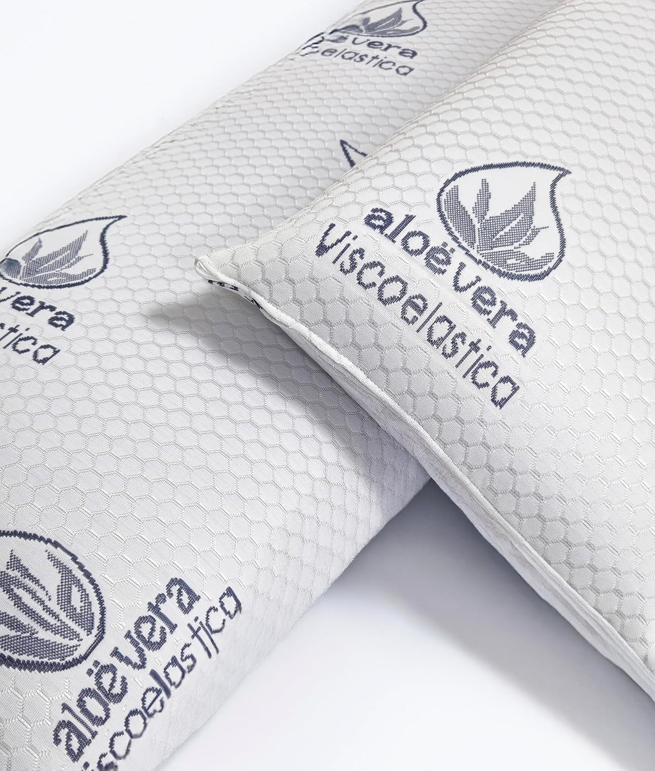 Ortopedyczna poduszka podtrzymująca szyję - Aloes organiczny - Aloe Vera Wiskoelastyczna poduszka Wysokość 14 cm 100% bawełna Poduszka Visco - Poduszka z pianki memory - Wyprodukowano we Włoszech -