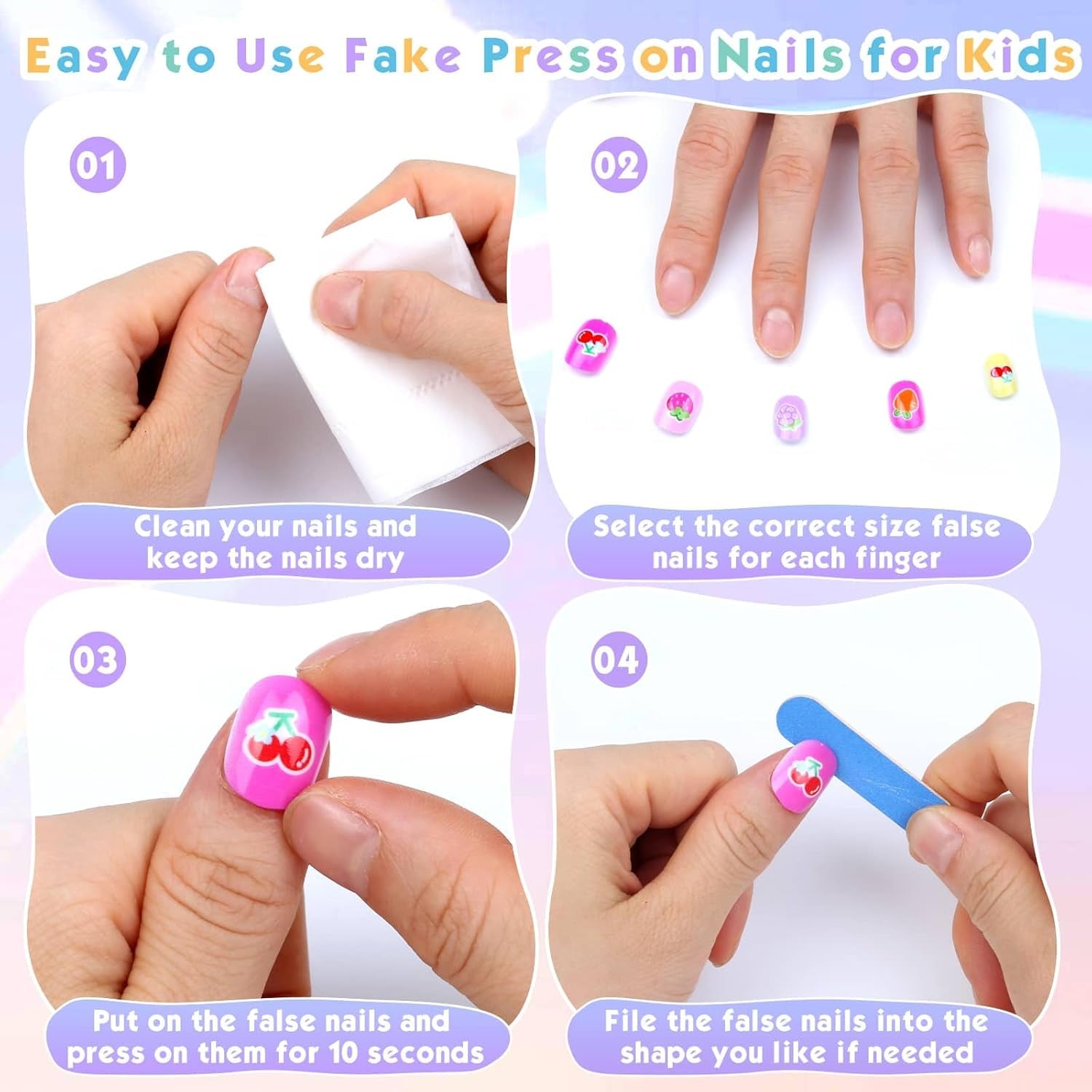168 szt. Paznokcie samoprzylepne dla dzieci Dziewczyny Nieśmiałe dzieci Fałszywe dzieci Naklejki wstępnego klejenia Paznokcie z pełnym pokryciem Krótkie paznokcie akrylowe Ozdobne paznokcie Dekoracje Zestaw podarunkowy