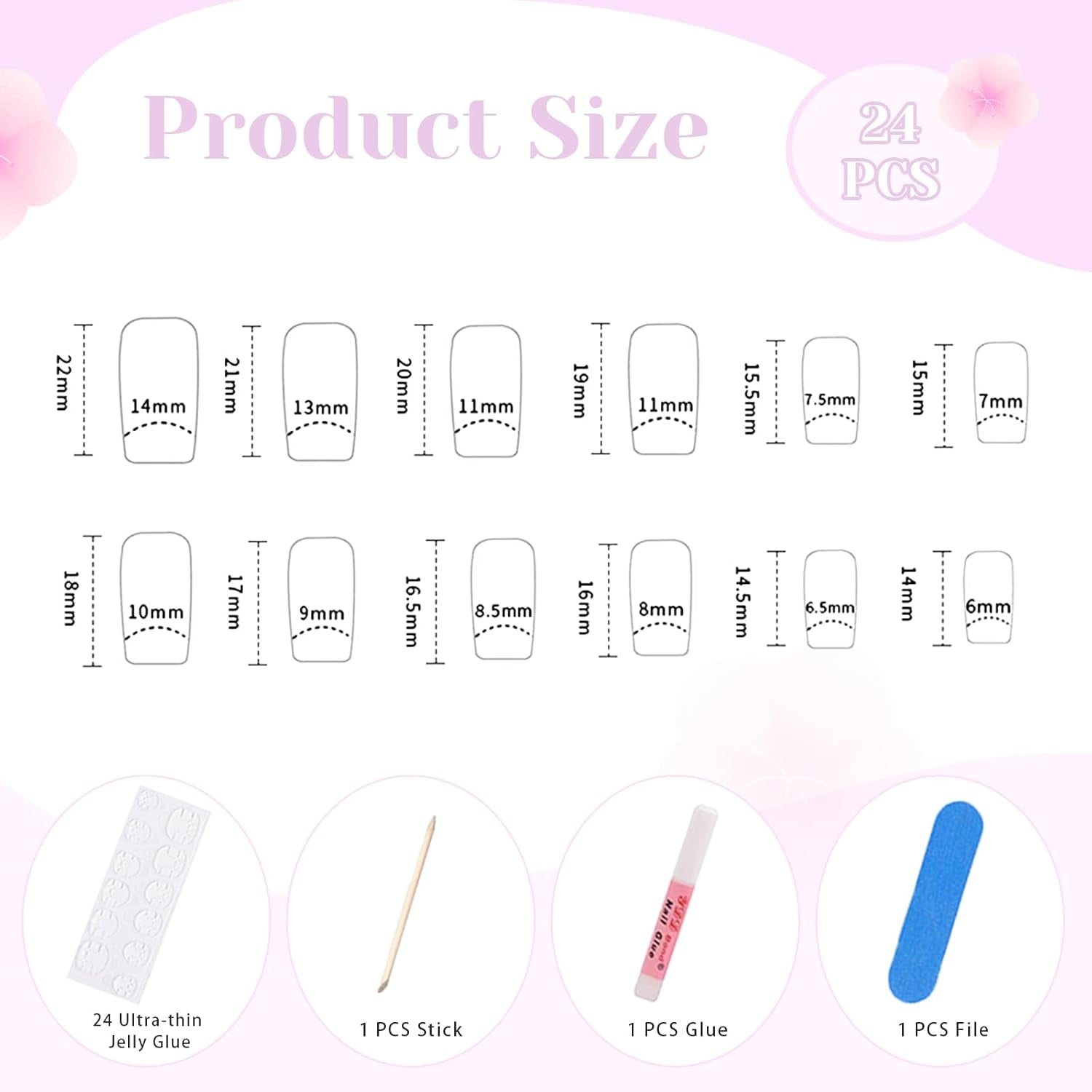 💅【Nowoczesna końcówka francuska】 Hebterrka zawiera 24 sztuczne paznokcie z klasyczną francuską końcówką, zapewniając elegancki manicure. Krótkie i kwadratowe, doskonale wpisują się w aktualne trendy mody.