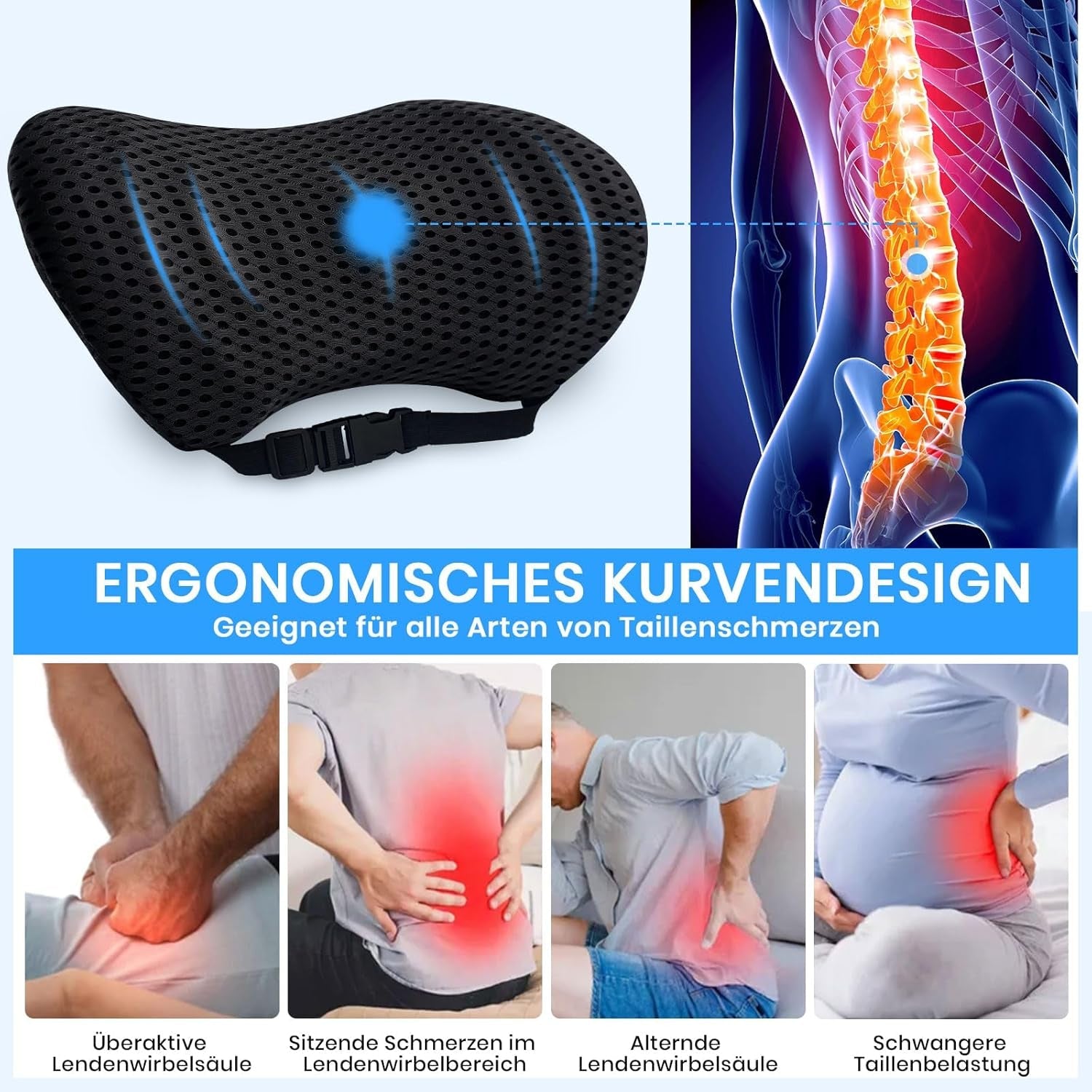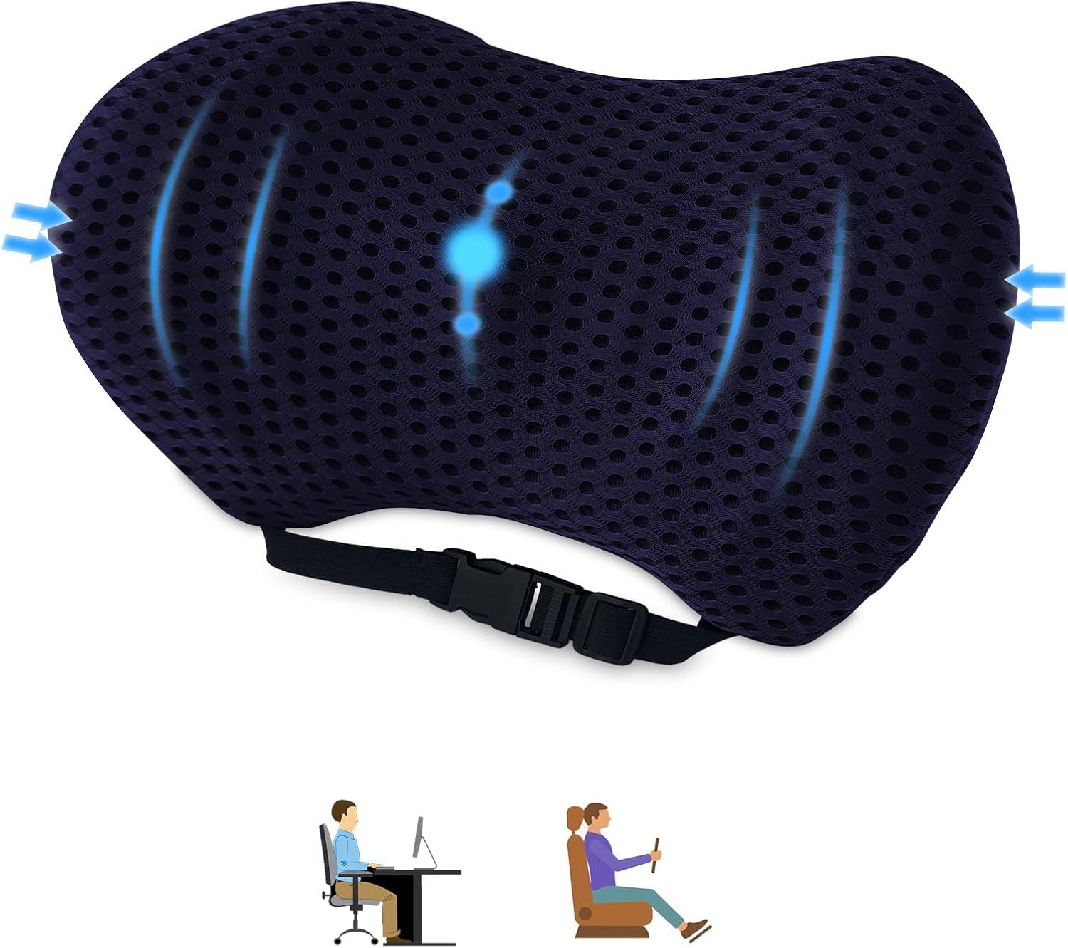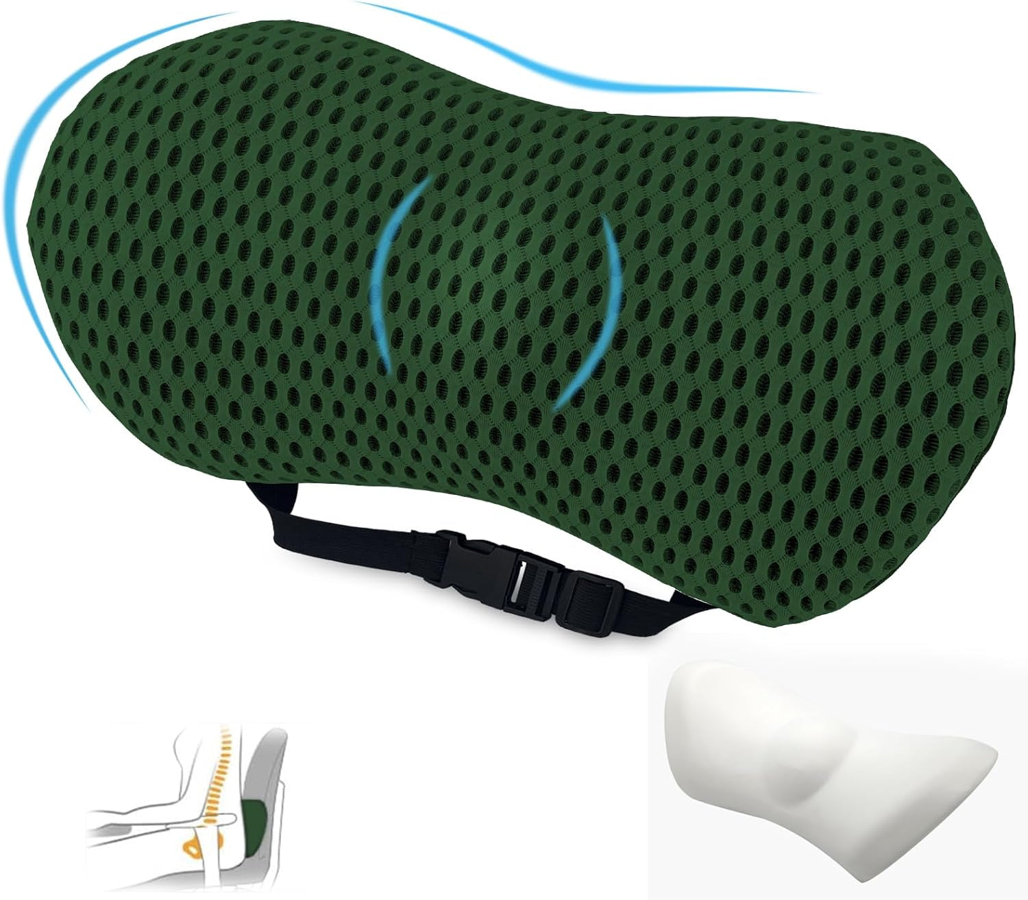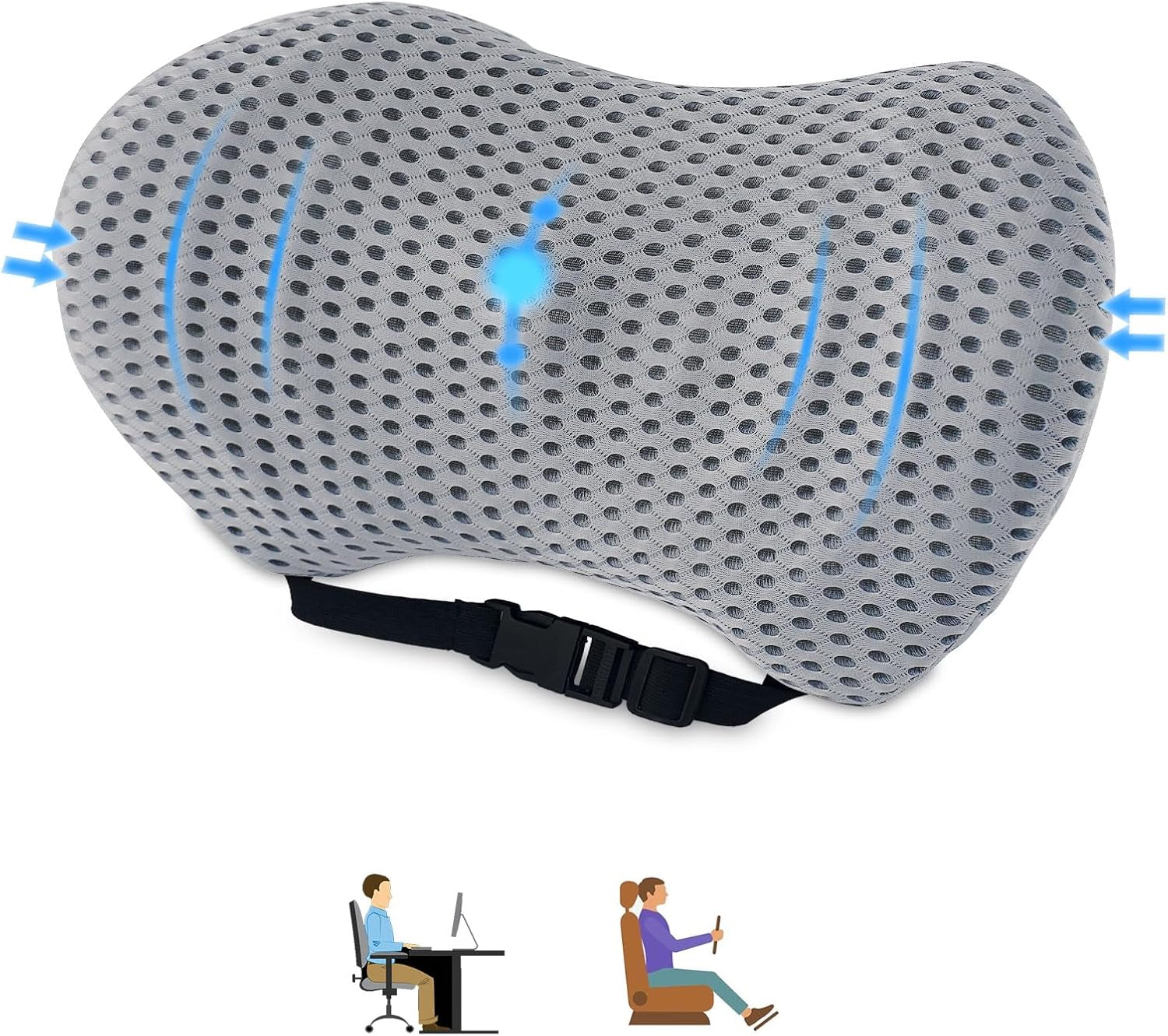 Aipwerer pernă lombară pentru spate, pernă de susținere lombară pentru scaun de birou și scaun auto, pernă de susținere pentru spate din spumă de memorie cu curea reglabilă, pernă lombară ergonomică pentru scaune auto, scaun de birou