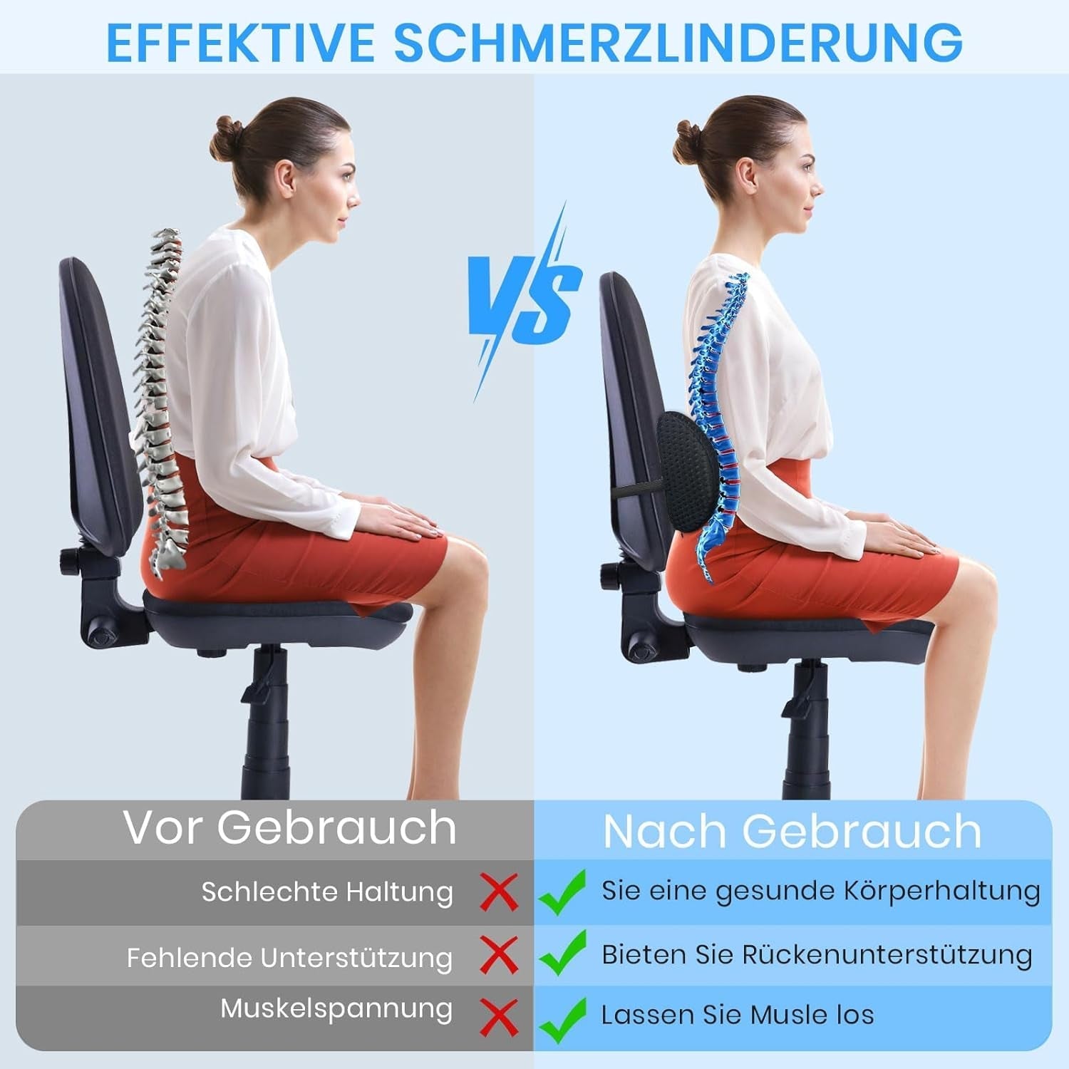 - €€Szerokie zastosowaniaã€'' Zaprojektowany dla pracowników biurowych, kierowców, zapewnia odpowiednie podparcie pleców przez cały czas; możesz skompresować poduszkę lędźwiową z pianki zapamiętującej kształt do niewielkich rozmiarów, a nawet zabrać ją na zewnątrz, aby uzyskać najwygodniejsze podparcie lędźwiowe w dowolnym miejscu i czasie. Oparcie krzesła nadaje się do krzeseł biurowych, krzeseł komputerowych, sof, siedzeń samochodowych, SUV-ów, wózków inwalidzkich, foteli rozkładanych lub łóżek.