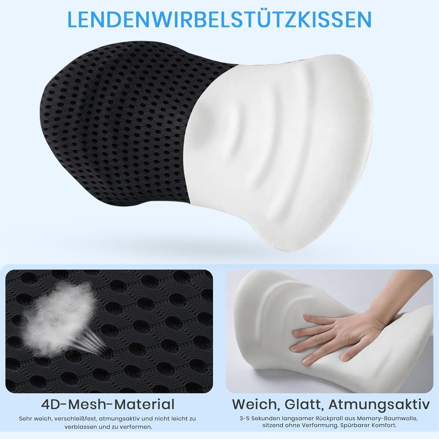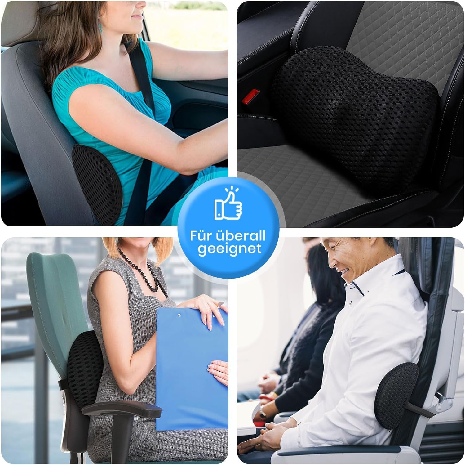 - „Pianka z pamięcią kształtu Premium” Nasz fotelik samochodowy z poduszką lędźwiową jest wykonany w 100% z pianki z pamięcią kształtu, jest miękki, ale zapewnia wystarczające wsparcie i nie spłaszcza się z biegiem czasu. w rdzeniu poduszki lędźwiowej zastosowano piankę z pamięcią kształtu premium, która skutecznie odbija i zapewnia komfortowe wsparcie, utrzymuje dolną część pleców we właściwej pozycji, zapewnia komfort przez długi czas i właściwą równowagę pomiędzy wsparciem a wygodą.