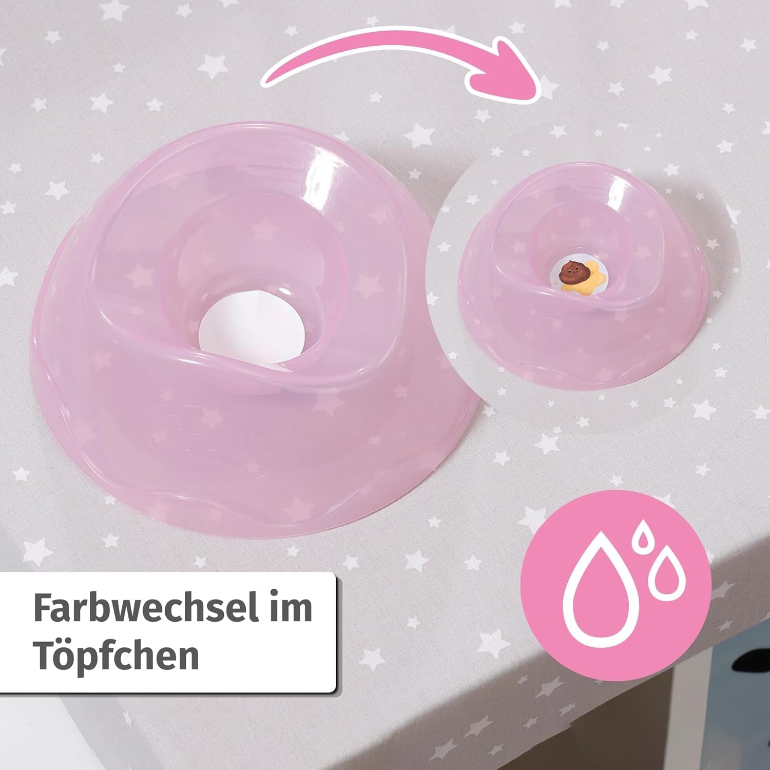 BABY Born Eva może pić, płakać, jeść, zmieniać pieluchę i iść do nocnika. Ponieważ funkcje działają bez baterii, Eva może nawet udać się do łazienki.