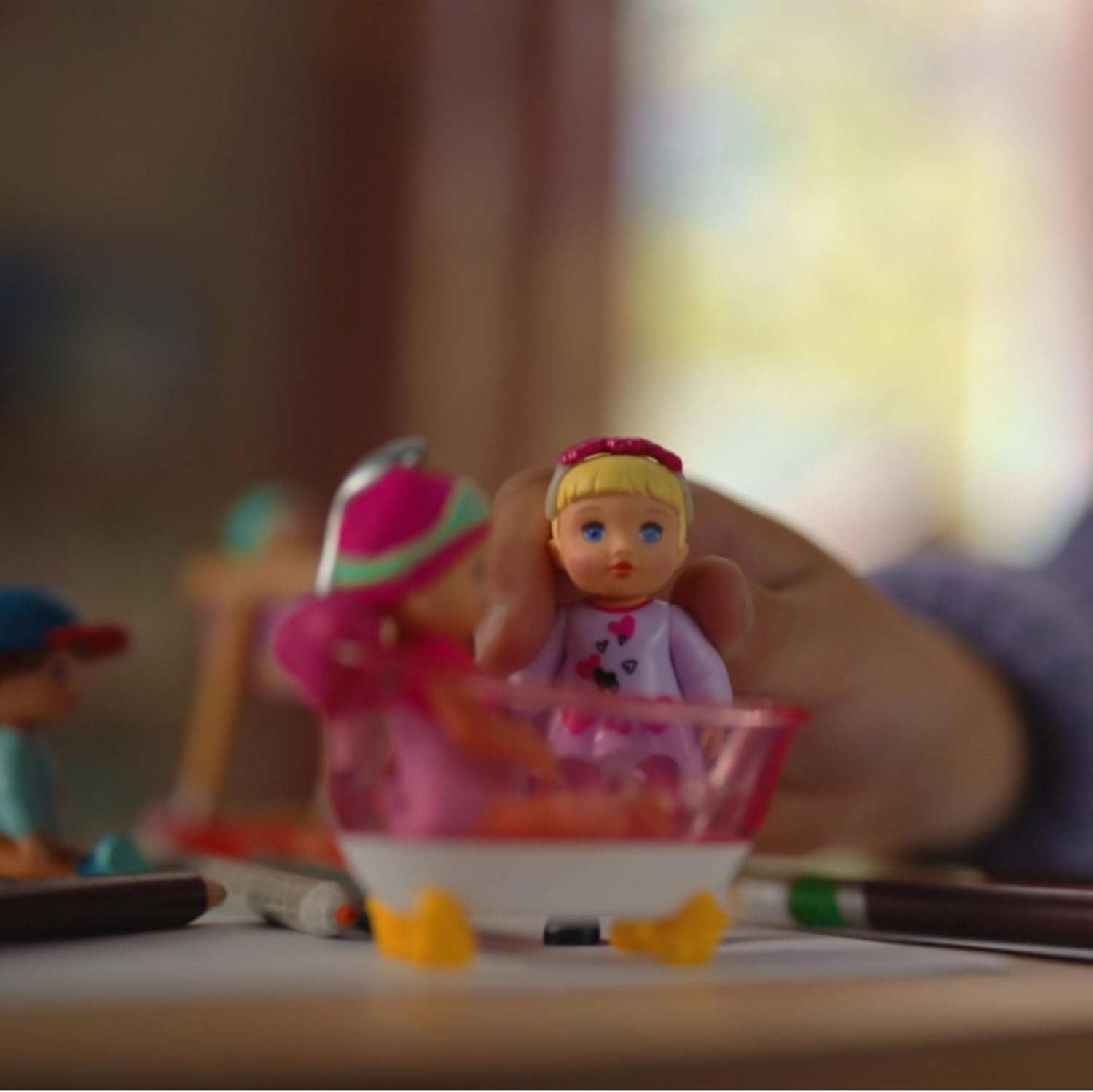 - MINI LALKA Z RUCHOMEMI CZĘŚCIAMI CIAŁA: Minilalka Amy o wysokości 7 cm z wanną to idealny prezent dla dzieci w wieku od 3 lat; głowa, ręce i nogi są ruchome