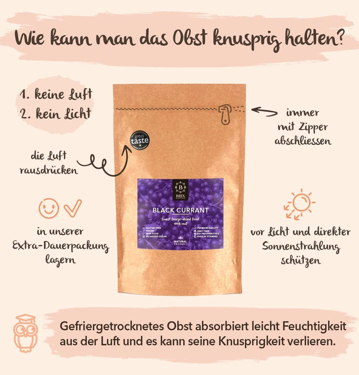 - 100% LIQUEFIED FRUIT - Liofilizowane czarne porzeczki bez dodatku konserwantów i cukru. Liofilizacja usuwa wodę z owoców. Jednak ich kolor, smak, struktura i skład, czyli wszystkie właściwości owocu zostają zachowane, a smak staje się intensywniejszy. Pyszna Zdrowa Przekąska - Innowacyjna zdrowa przekąska dla dzieci i dorosłych. Idealnie sprawdzi się również jako dodatek do śniadaniowych musli i koktajli. Odpowiedni dla wegetarian, wegan i miłośników surowej żywności, bezglutenowy.