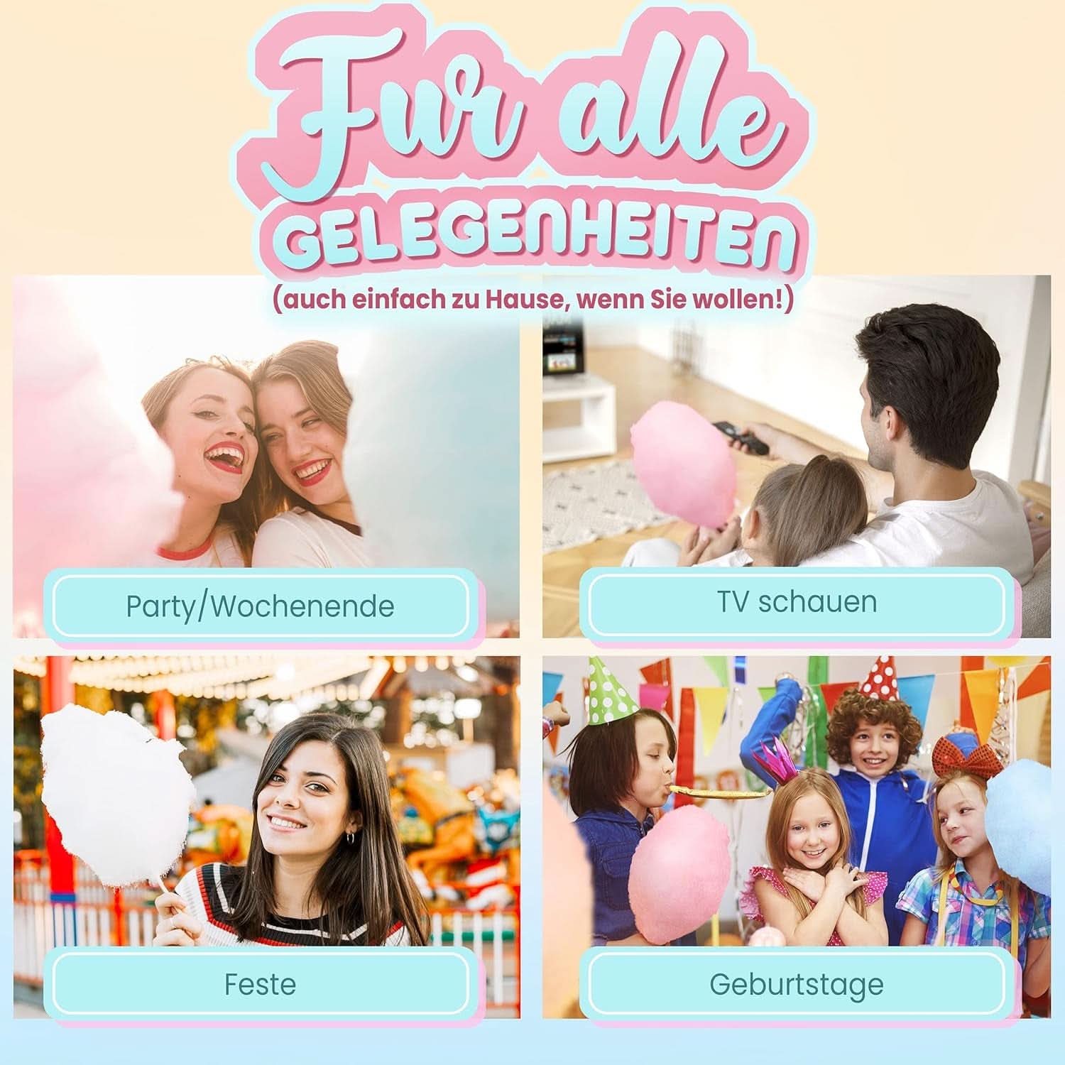 Dzięki zestawowi waty cukrowej z łatwością przywołasz w domu atmosferę waty cukrowej. Idealny na urodziny, wesela lub imprezy tematyczne: zacznij i stwórz własną watę cukrową ze swoimi gośćmi. Ten zestaw maszyn do waty cukrowej o smaku zachwyci dzieci, a dorosłym przywoła wspomnienia z dzieciństwa. Sprzedający: Sohi LLC, 4 petite place st Pierre Latour, 43000 Le Puy en Velay, Francja