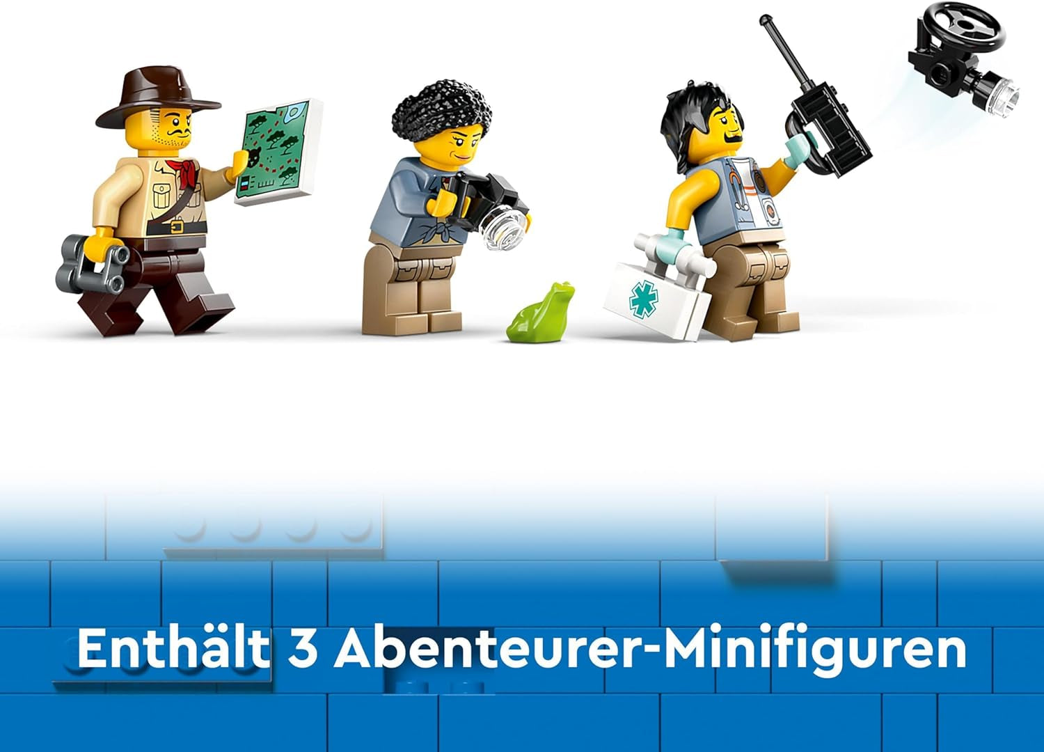 • Zestaw z ciężarówką i dżunglą z fajnymi akcesoriami: ten zestaw dla dzieci zawiera akcesoria do minifigurek LEGO do odgrywania ról, takie jak mapa, lornetka, aparat i radio