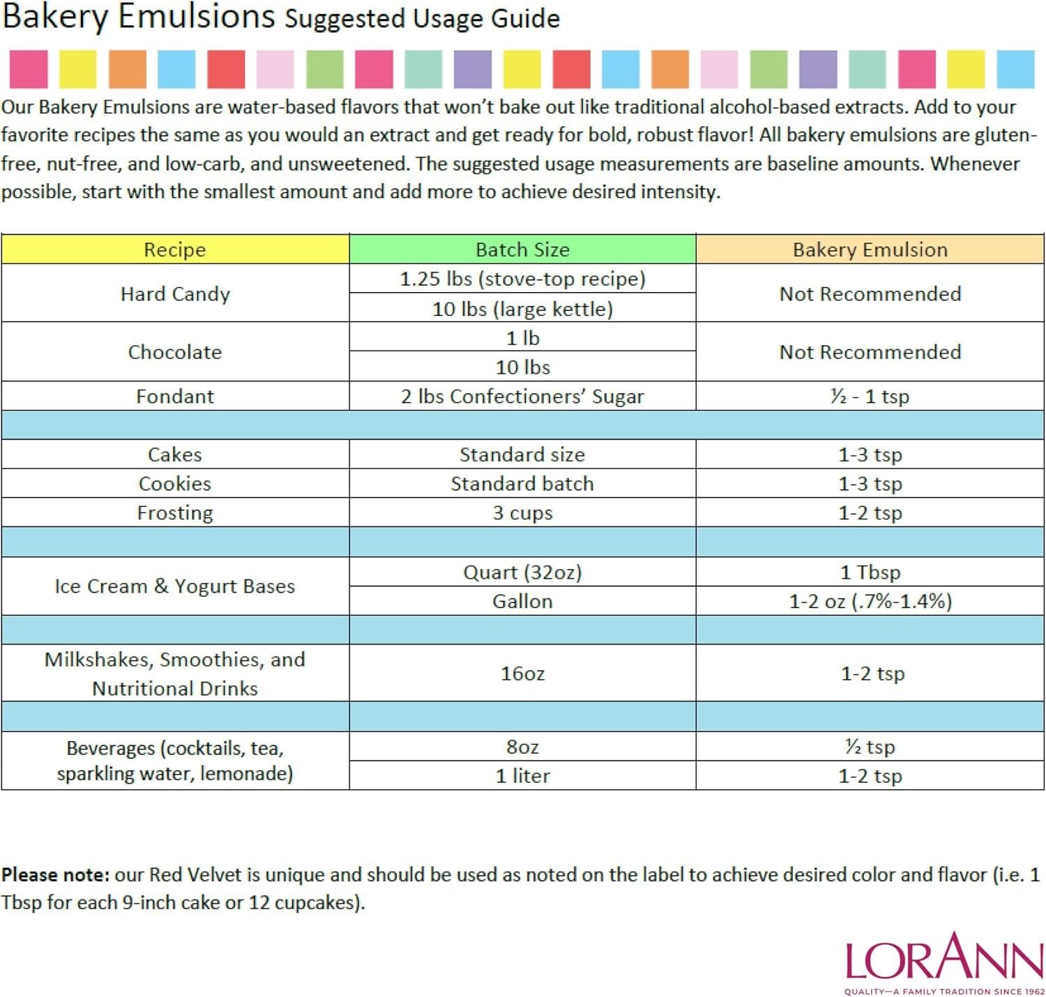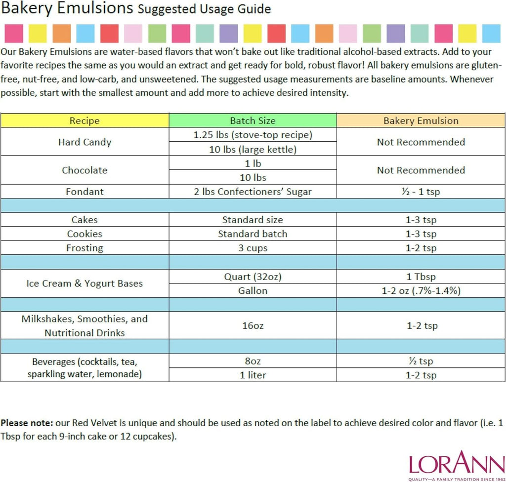 Profesjonalne emulsje do pieczenia LorAnn wyróżniają się od skoncentrowanych ekstraktów bogatym, mocnym i długotrwałym smakiem. Emulsje nadają się szczególnie do stosowania w bardziej ekstremalnych warunkach. Można je przetwarzać w wysokich temperaturach. Doskonały wybór do wszelkich ciast, ciastek, posypek, ale także do nadzienia typu lukier i desery.