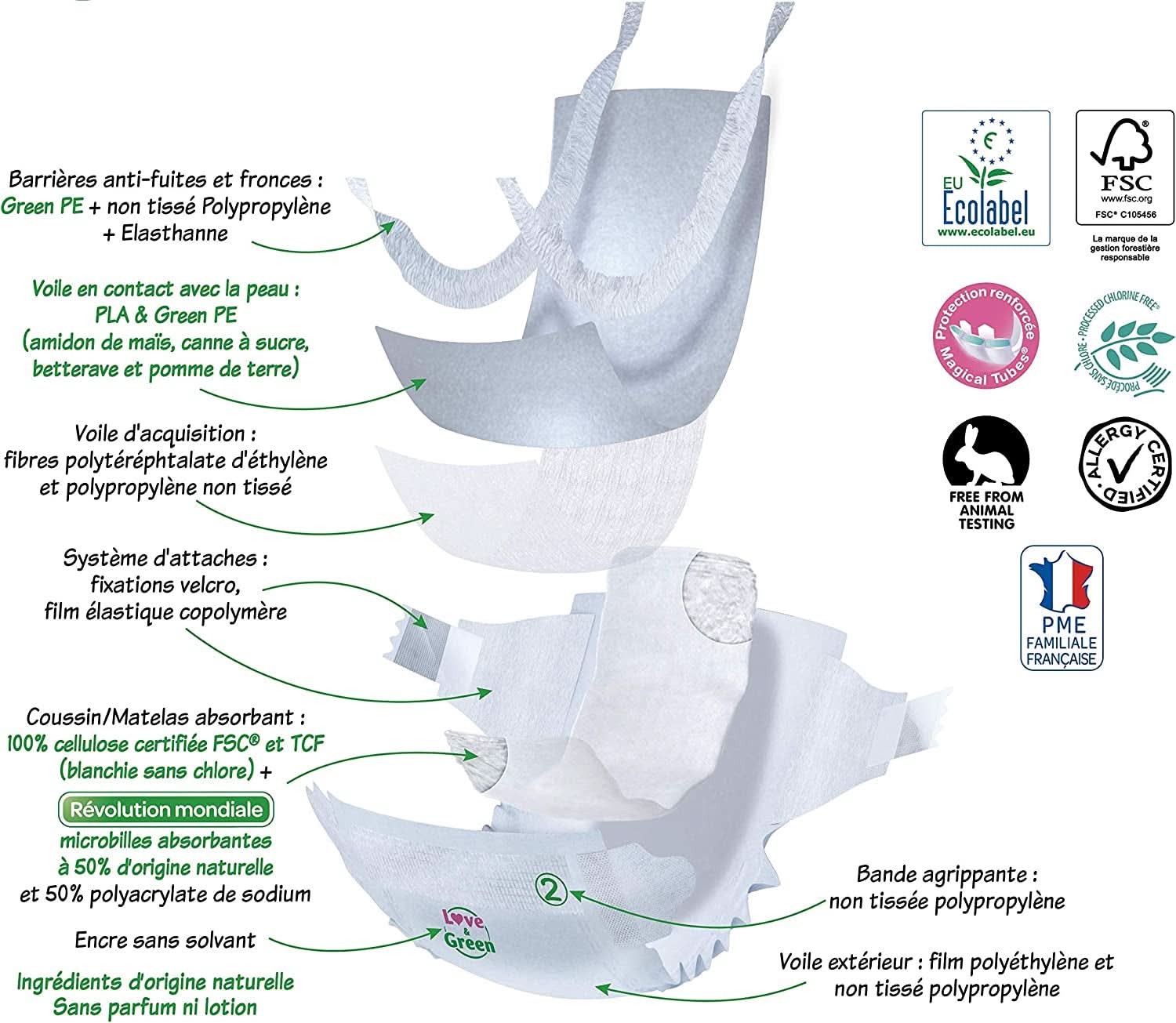 Założona w 2011 roku przez Céline i Gabriela, parę młodych rodziców, firma Love & Green powstała z małżeństwa. Wraz z pojawieniem się pierwszego dziecka młoda para odkrywa rynek pieluch zdominowany przez duże marki, które wyznaczają własne standardy; Organy ds. zdrowia, media i konsumenci nie odnieśliby się do tych standardów. Panował ogólny konsensus: co do plastiku, który decyduje o składzie warstw rynku, ale także balsamów na bazie ropy naftowej i barwników…