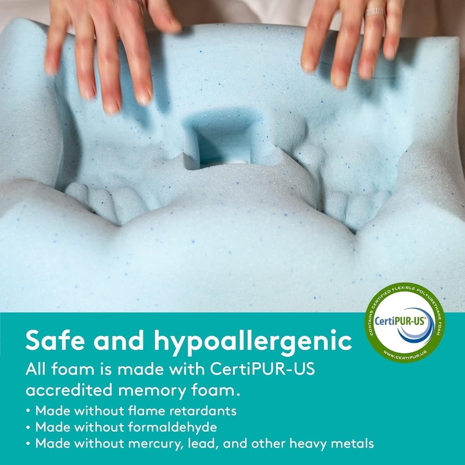 Mini poduszka nauszna BLISSBURY Śpij spokojnie i komfortowo dla uszu. Nasza mini poduszka do przekłuwania uszu BLISSBURY została zaprojektowana dla osób, które mają trudności z oparciem się na uchu z powodu piercingu, schorzeń lub urazów. Ta miękka, wspierająca i chłodząca poduszka do przekłuwania uszu zapewnia spokojny sen bez ucisku na ucho. Wymiary: 40,6 cm. (szer.) x 27,9 cm (dł.) x 5,5 cala (wys.), zapewnia również doskonałe wsparcie szyi, a środkowy otwór zapobiega naciskowi na ucho. Jego niewielkie rozmiary czynią go idealnym towarzyszem podróży; po prostu skompresuj piankę z pamięcią kształtu, aby ułatwić pakowanie i zabierz ją ze sobą, gdziekolwiek się wybierasz. Nigdy więcej nie przegapisz dobrego snu dzięki tej doskonałej poduszce do spania na boku. W sam raz dla osób śpiących na boku: prawidłowe ułożenie szyi i kręgosłupa ma kluczowe znaczenie dla wygodnego snu na boku. Nasza poduszka do przekłuwania z pianki zapamiętującej kształt zapewnia stabilną platformę, która utrzymuje szyję w neutralnej pozycji i zapobiega dyskomfortowi. Otwór na ucho 8,1 cm. otwór na ucho zapewnia dużo miejsca na słuchawki, douszne lub zatyczki do uszu, dzięki czemu jest świetną poduszką w przypadku przekłucia lub bólu uszu. Niezależnie od tego, czy blokujesz hałas, czy słuchasz muzyki, ta poduszka zapewnia wygodny i spokojny sen. Chłodna, gładka i relaksująca: wykonana z akredytowanej przez CertiPUR-US pianki chłodzącej z dodatkiem żelu chłodzącego, nasza boczna poduszka do spania z otworem na ucho zapewnia optymalne podparcie głowy i stabilność przez całą noc. Utrzymuje twarz i uszy w chłodzie i suchości, co zapewnia większy komfort. Miękka, podwójnie tkana poszewka pochłania nadmiar wilgoci, jest odporna na zagniecenia i jest niezwykle miękka w dotyku. Można go również prać w pralce, co ułatwia czyszczenie. Ciesz się spokojnym snem dzięki mini poduszce z otworem na ucho BLISSBURY. Niezależnie od tego, czy potrzebujesz poduszki w kształcie pączka do przekłuwania uszu, poduszki odciążającej ucho, czy po prostu wygodnej poduszki do przekłuwania uszu dla osób śpiących na boku, kup ją już dziś i ciesz się idealnym snem, gdziekolwiek się udasz.