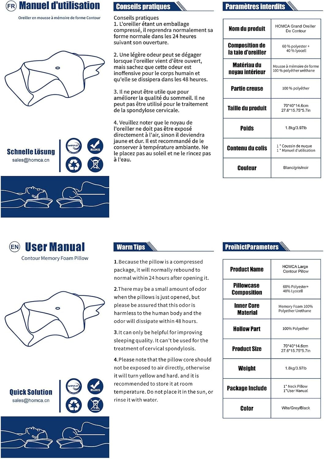• „Wysokiej jakości poduszka z pianki memory” Ta poduszka jest wykonana z wysokiej jakości pianki z pamięcią kształtu o umiarkowanej twardości, aby zapewnić wygodne wsparcie podczas snu i zminimalizować ból szyi i sztywność ramion. Pianka memory z funkcją pomiaru temperatury, która idealnie dopasowuje poduszkę do szyi.