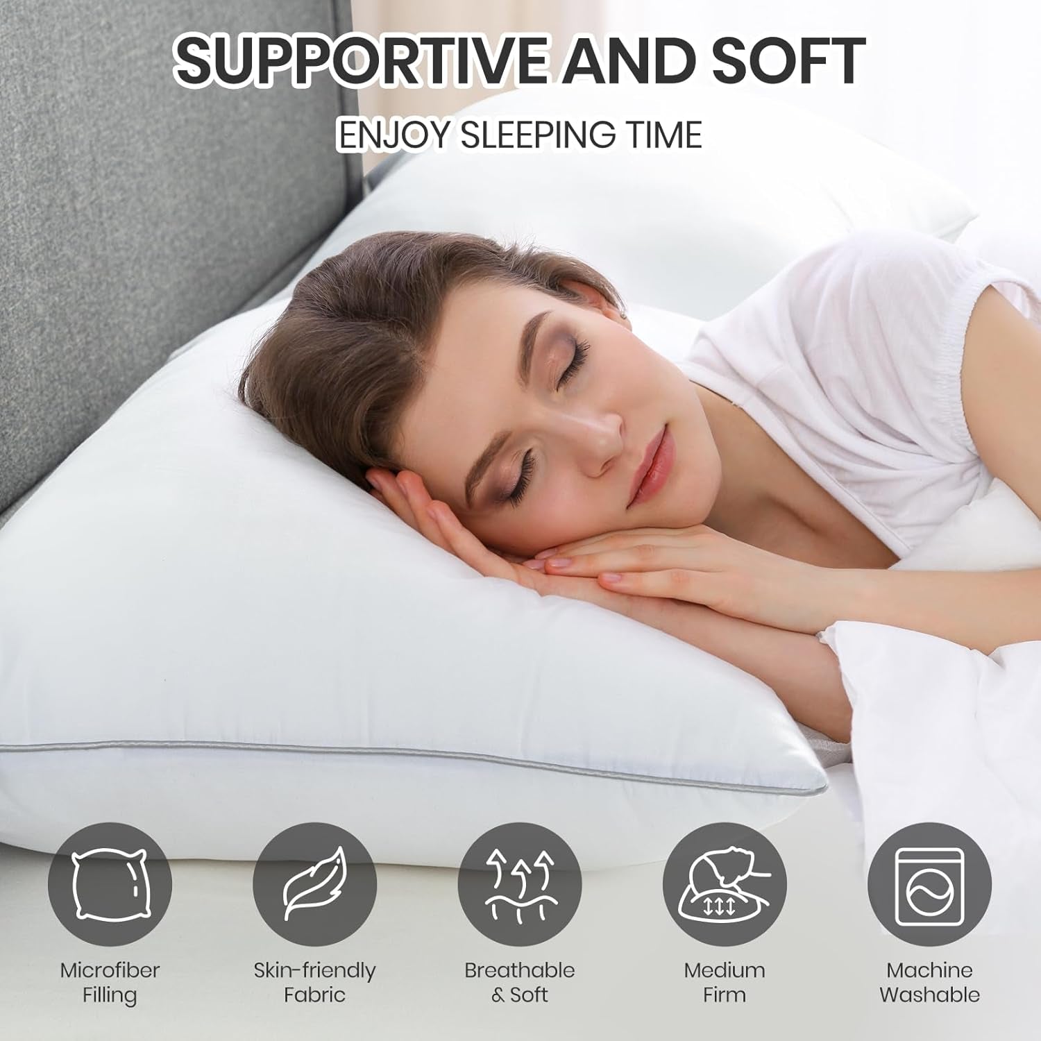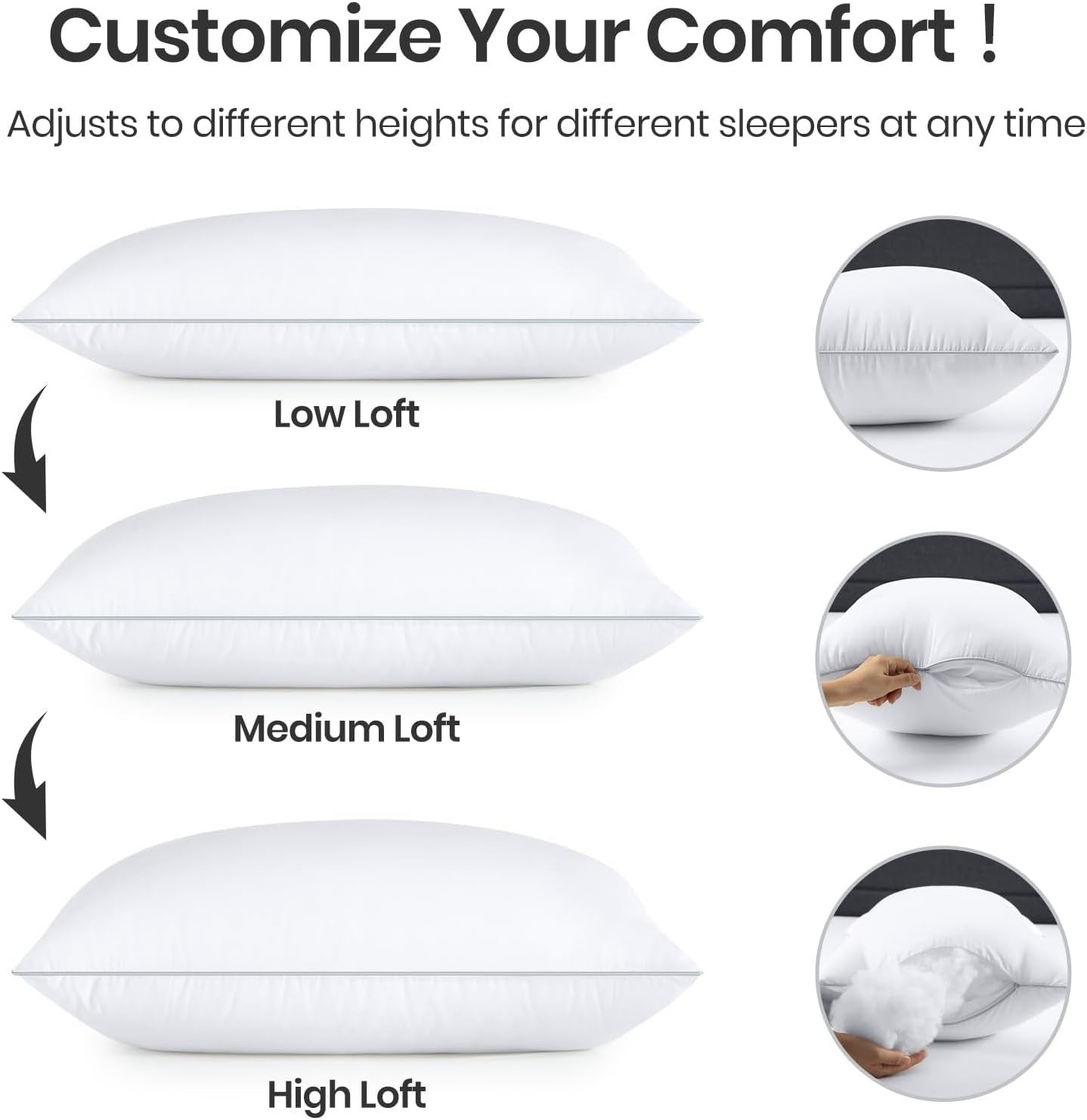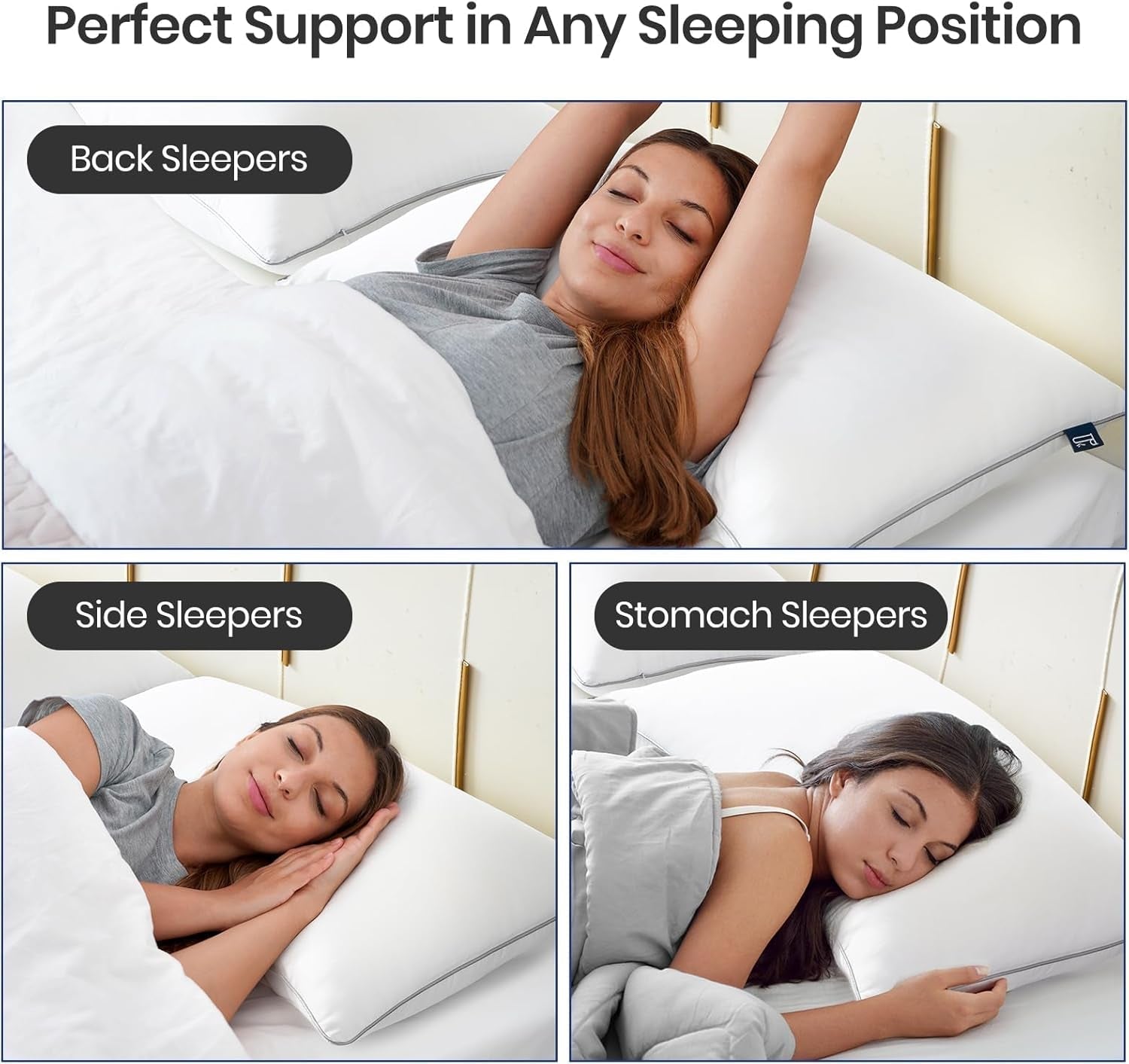 - Luksus w domu: konstrukcja bez przesuwania zapewnia, że poduszki nigdy się nie spłaszczają ani nie wysuwają spod Ciebie, niezależnie od preferowanej pozycji do spania. Dzięki ich miękkiemu, puszystemu wyglądowi i wysokiej jakości konstrukcji z pewnością będziesz mógł cieszyć się hotelowym luksusem we własnym domu.