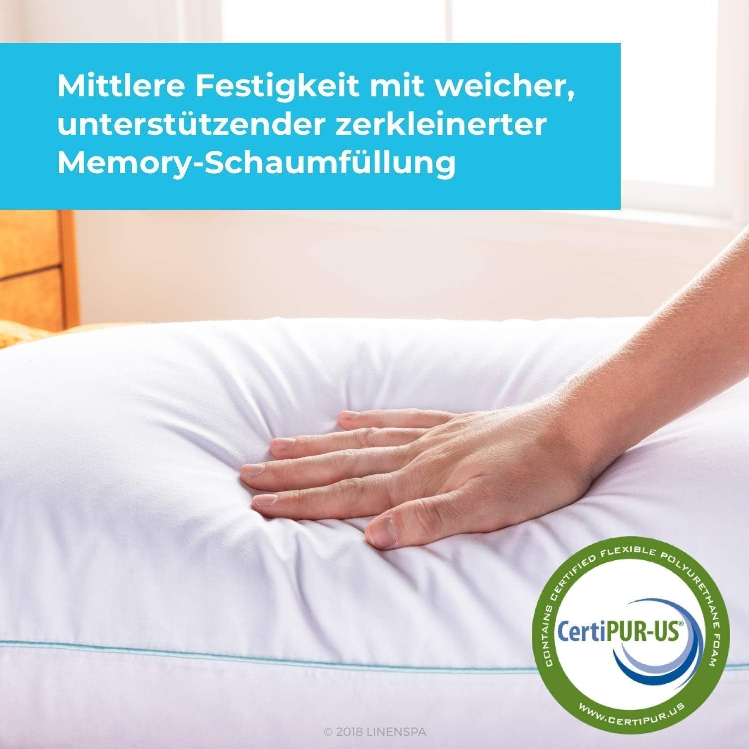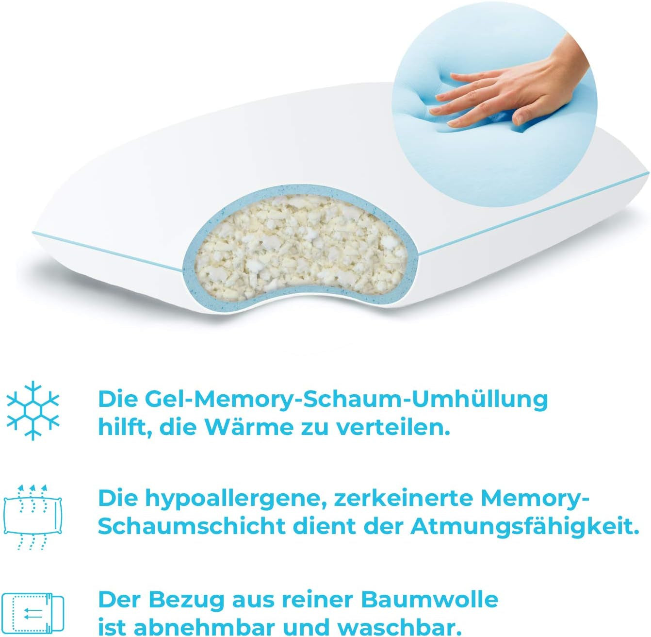 Poduszka Linenspa 40X60 cm Wykonana z płatków żelowej pianki Memory - Poduszka Oeko-Tex - Oddychająca i chłodząca osłona żelowa - Pokrowiec z białej bawełny nadający się do prania