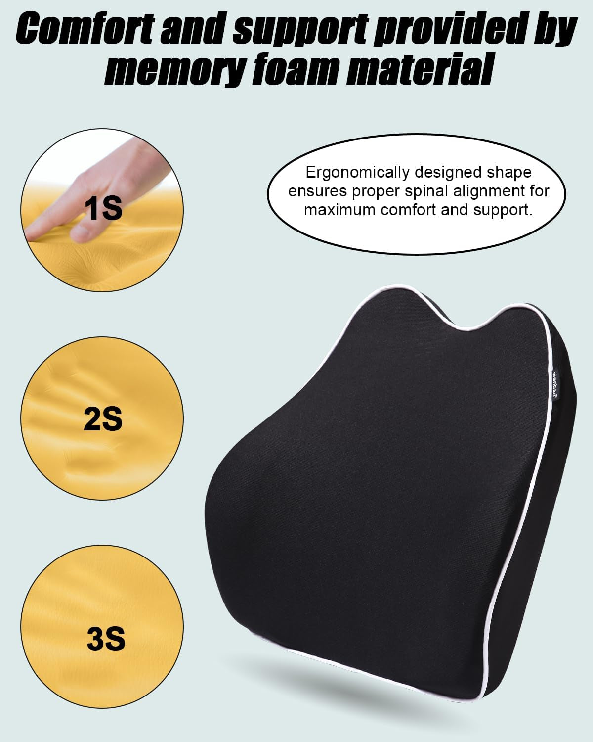 - „Wygodna pianka z pamięcią kształtu” Nasza poduszka lędźwiowa jest wykonana z wysokiej jakości pianki z pamięcią kształtu, która idealnie dopasowuje się do kształtu pleców i zapewnia wyjątkowy komfort i wsparcie. Niezależnie od tego, czy prowadzisz samochód przez dłuższy czas, czy pracujesz przy biurku, pianka z pamięcią kształtu zachowuje swój kształt i zapewnia długotrwałą wydajność.