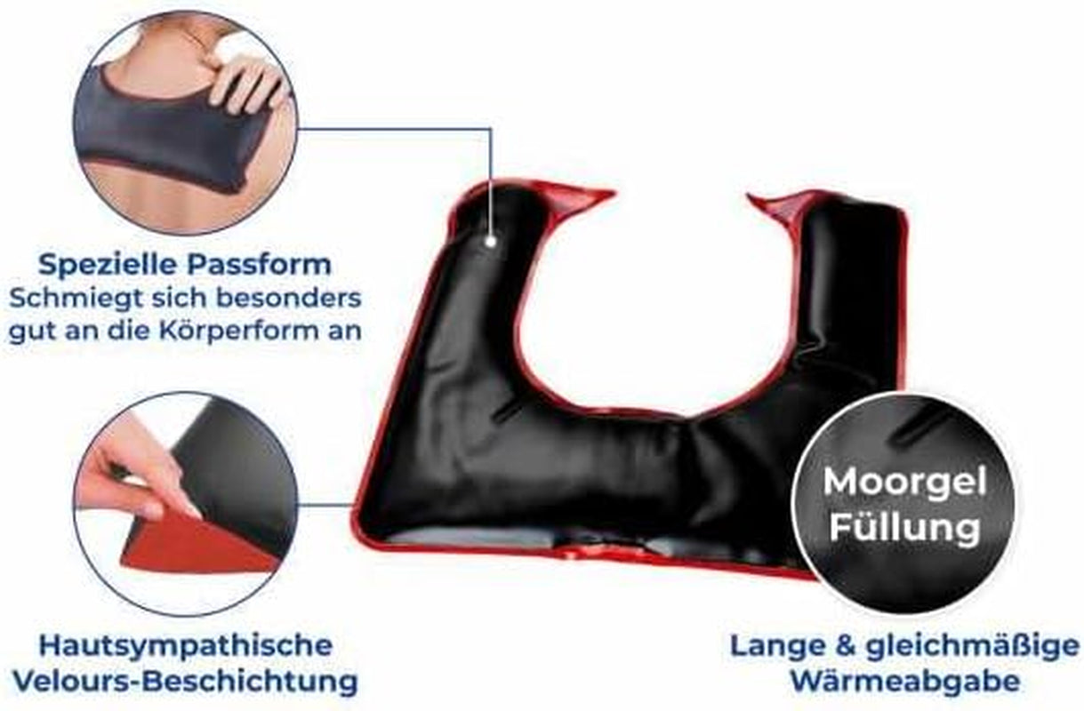 Poduszka pod kark wypełniona żelem Moor zatrzymuje ciepło znacznie dłużej niż konwencjonalne termożele i zachwyca niezwykle przyjemnym i równomiernym rozprowadzaniem ciepła.