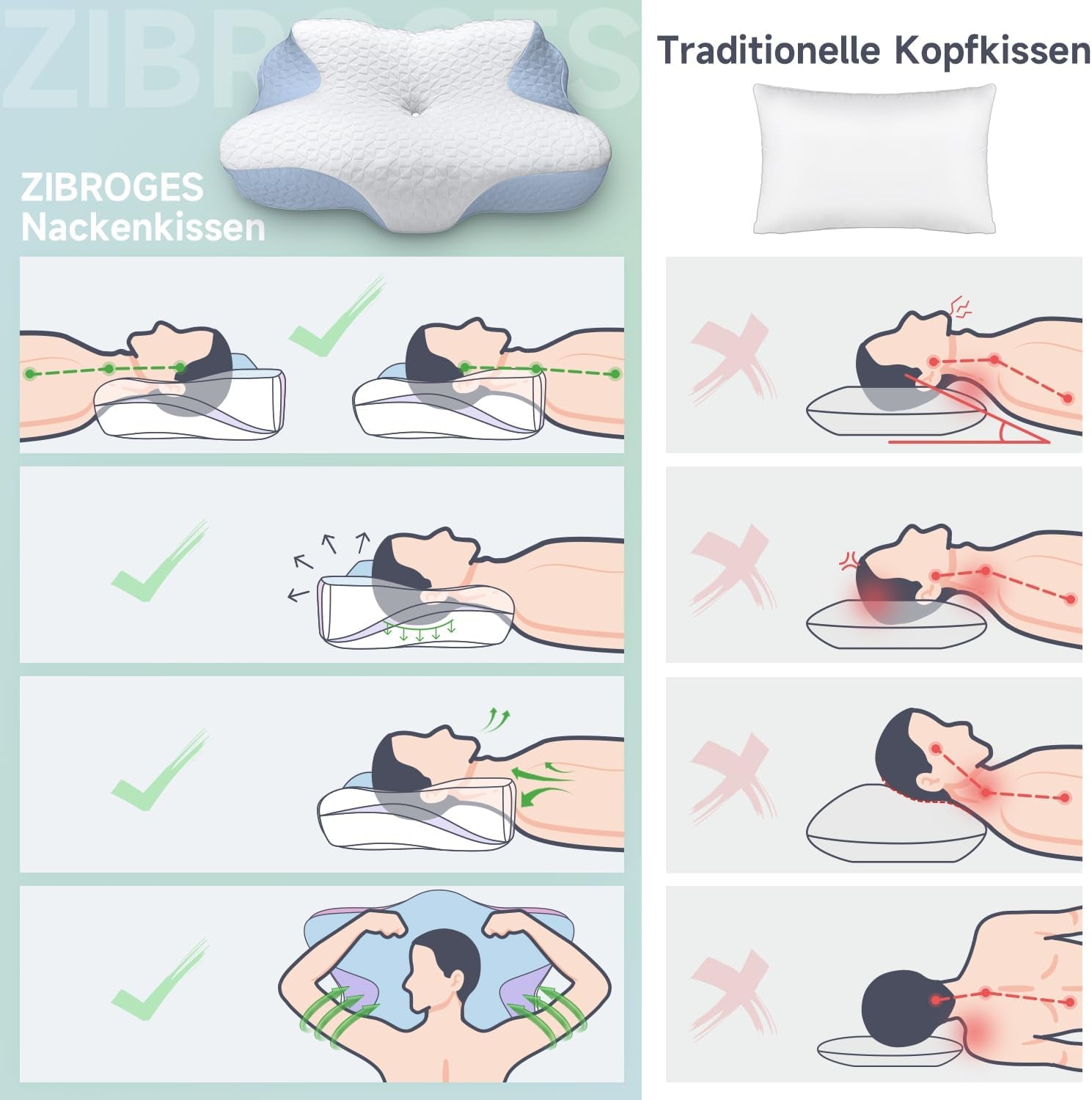 • 🙠Ciesz się komfortem poduszki na szyję Zibroges! Zaprojektowana w Niemczech, ta falista poduszka dopasowuje się do Twojej głowy i szyi, a wysokiej jakości pianka z pamięcią kształtu dopasowuje się do Twojej ulubionej pozycji do spania, zapewniając przyjemny poranek.
