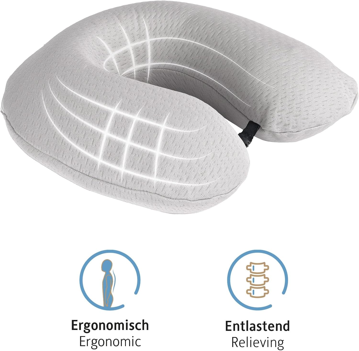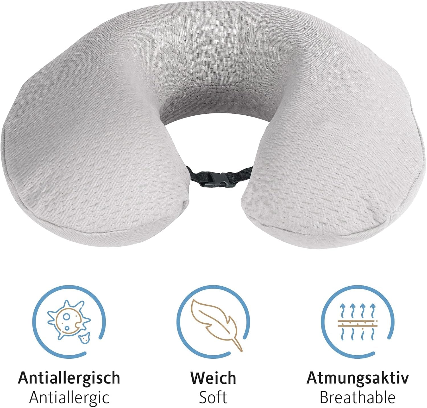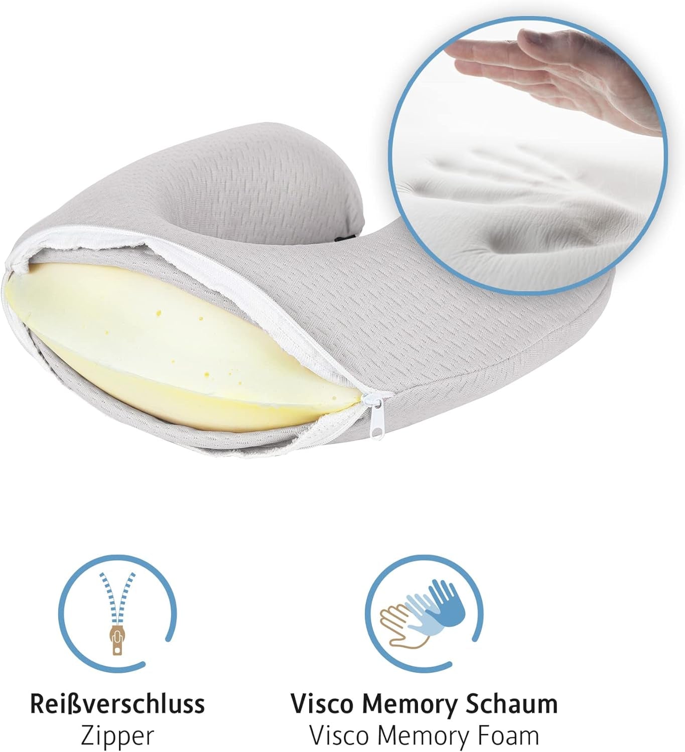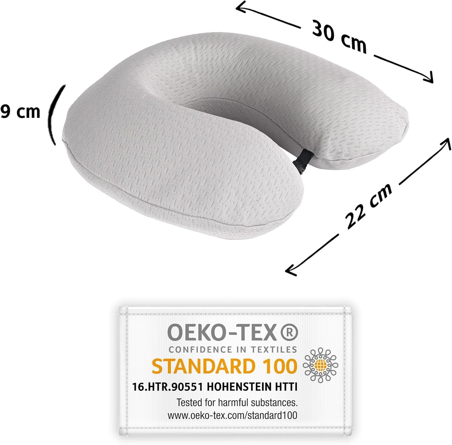 Poduszka podróżna Komfortec, poduszka pod kark 100% pianka Visco-Memory, poduszka podróżna z certyfikatem Oeko-Tex, poduszka pod szyję - poduszka podtrzymująca - poduszka podróżna, jasna, szara