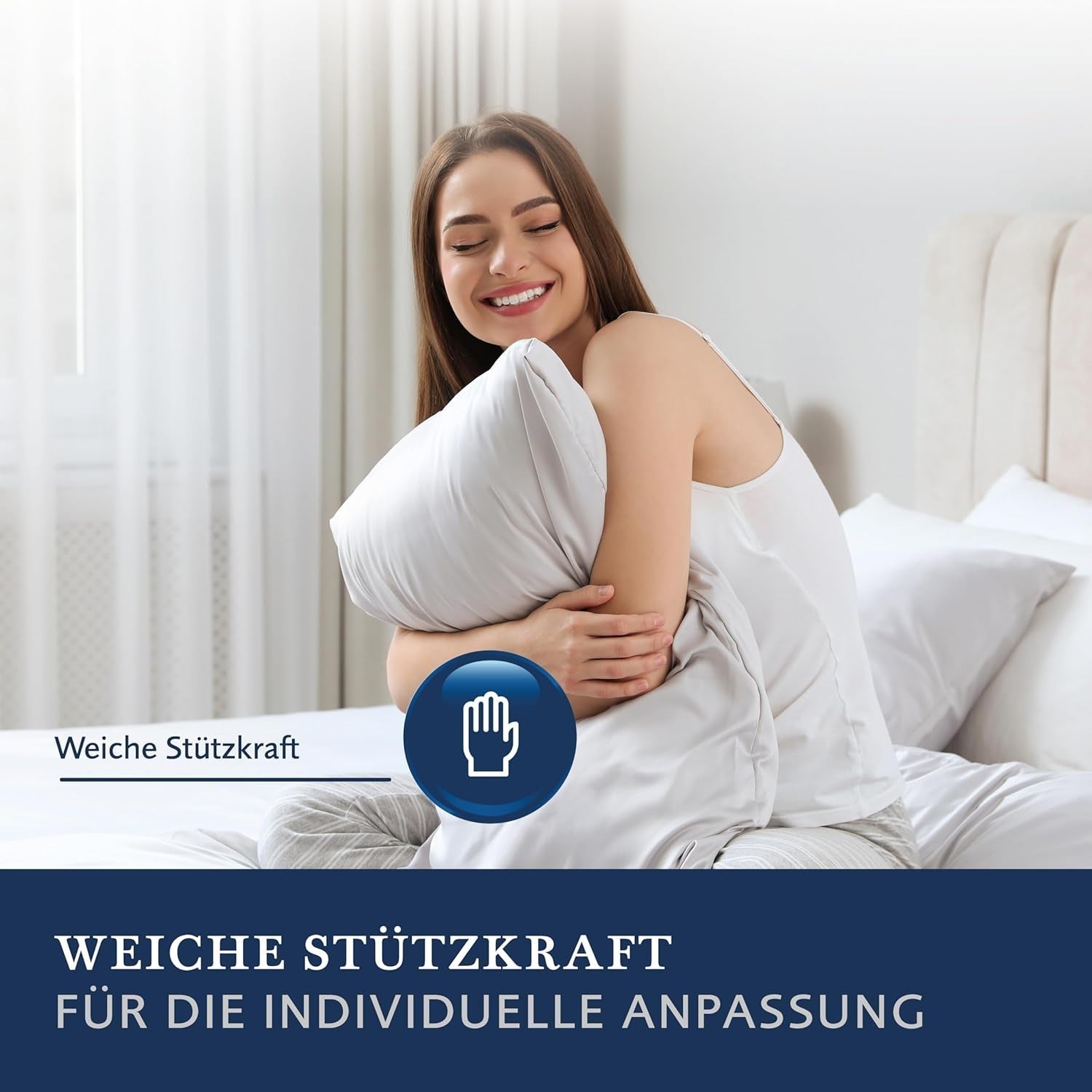 - Miękkie wsparcie: Ta poduszka z włókna zapewnia miękkie wsparcie dla idealnego podparcia szyi dzięki puszystemu wypełnieniu. Można ją indywidualnie regulować dzięki zamkowi błyskawicznemu. billerbeck Schlafkultur: Renomowana firma rodzinna od 1921 roku produkuje wysokiej jakości pościel. Wszystkie kołdry, poduszki, nakładki i materace są wykonane z wysokiej jakości materiałów i zapewniają spokojny sen.