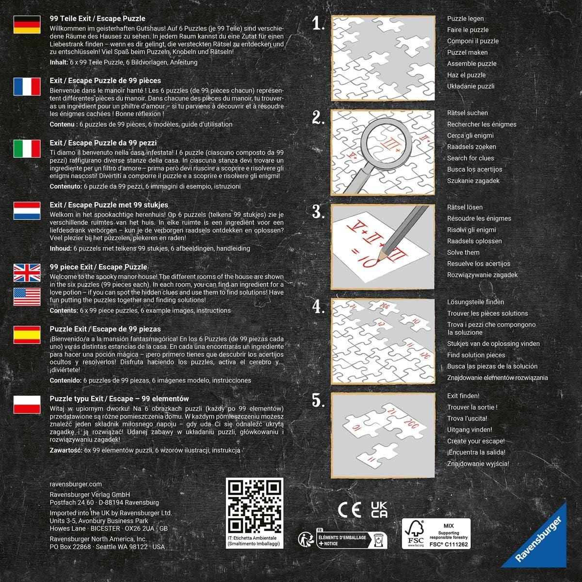 Ravensburger EXIT Puzzle - The Ghostly Manor House - 6X puzzle de 99 de piese pentru adulți și copii iubitori de puzzle cu vârsta de 10 ani și peste Puzzle Naty Shop Gotic