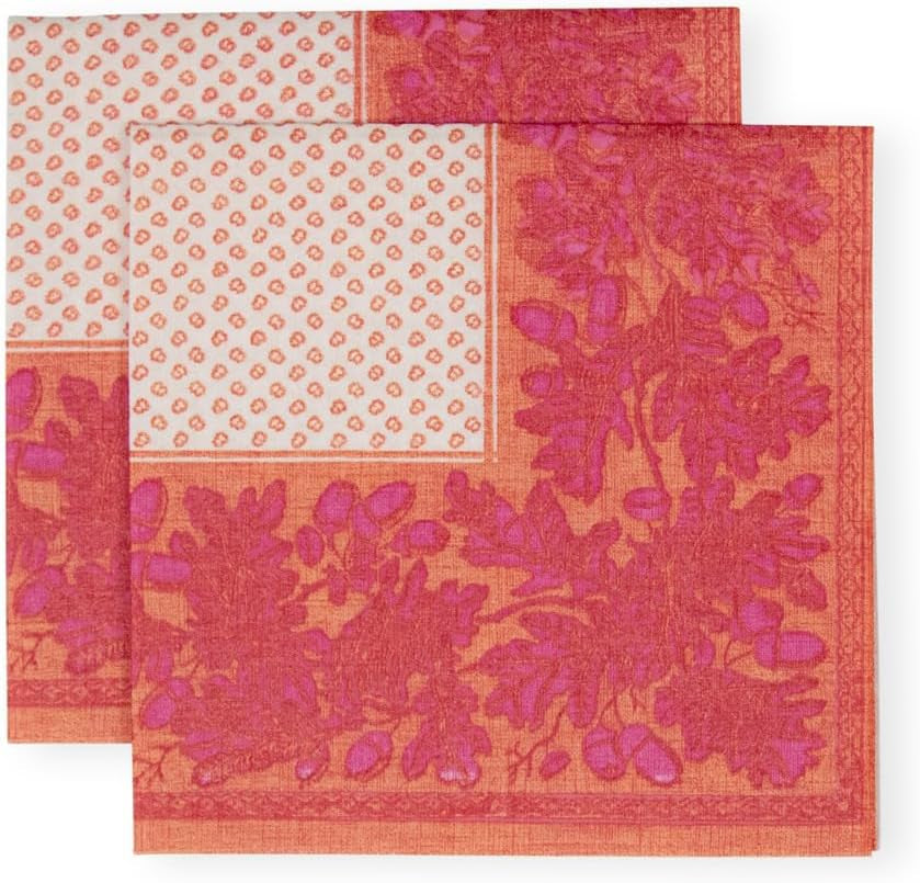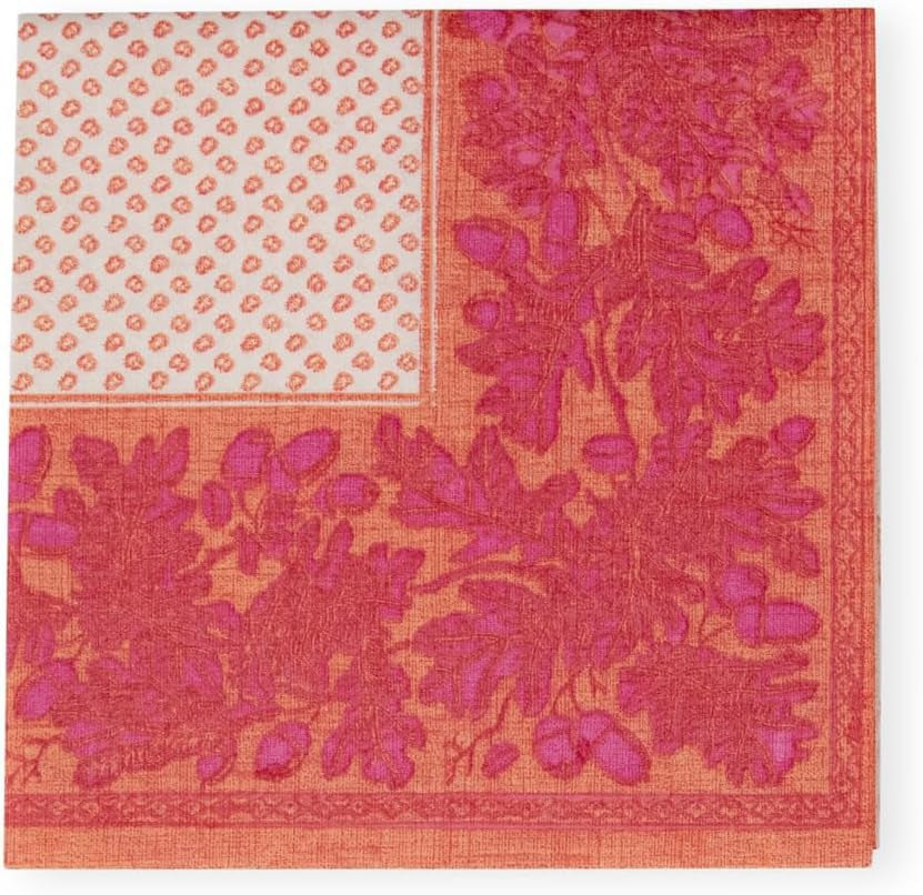 Șervețele de cocktail, frunze de stejar și ghinde, din in, portocaliu și fucsia, 15 bucăți per pachet