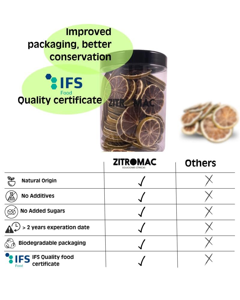 - 100% NATURALNE OWOCE - Zitromac wybiera tylko najlepsze limonki, aby je odwodnić. Dzięki powolnemu procesowi możliwe jest zachowanie zapachu i smaku cytryn. Bez dodatków, bez cukru, bez słodzików