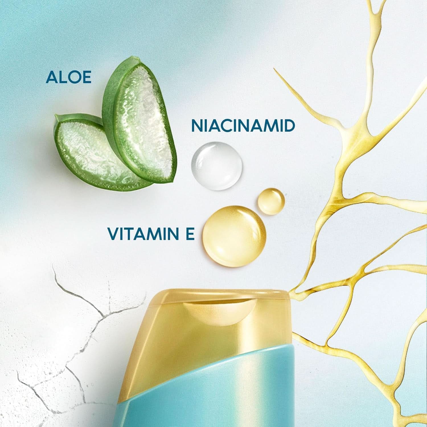Składniki: Woda, laurylosiarczan sodu, laurylosiarczan sodu, chlorek sodu, kokamidopropylobetaina, ksylenosulfonian sodu, distearynian glikolu, cytrynian sodu, dimetikonol, pirokton olaminy, dimetikon, perfumy, kwas cytrynowy, benzoesan sodu, salicylan sodu, TEA-Dodecylobenzenosulfonian, Chlorek hydroksypropylotrimonium guar, Mentol, Octan tokoferylu, Trideceth-10, Tetrasodowy EDTA, Wodorotlenek sodu, Cynamal heksylowy, Niacynamid, Sok z liści aloesu Barbadensis, Linalool, Hydroksycytronellal, Geraniol, Citronellol, Alkohol benzylowy, glikol trietylenowy, glikol propylenowy.