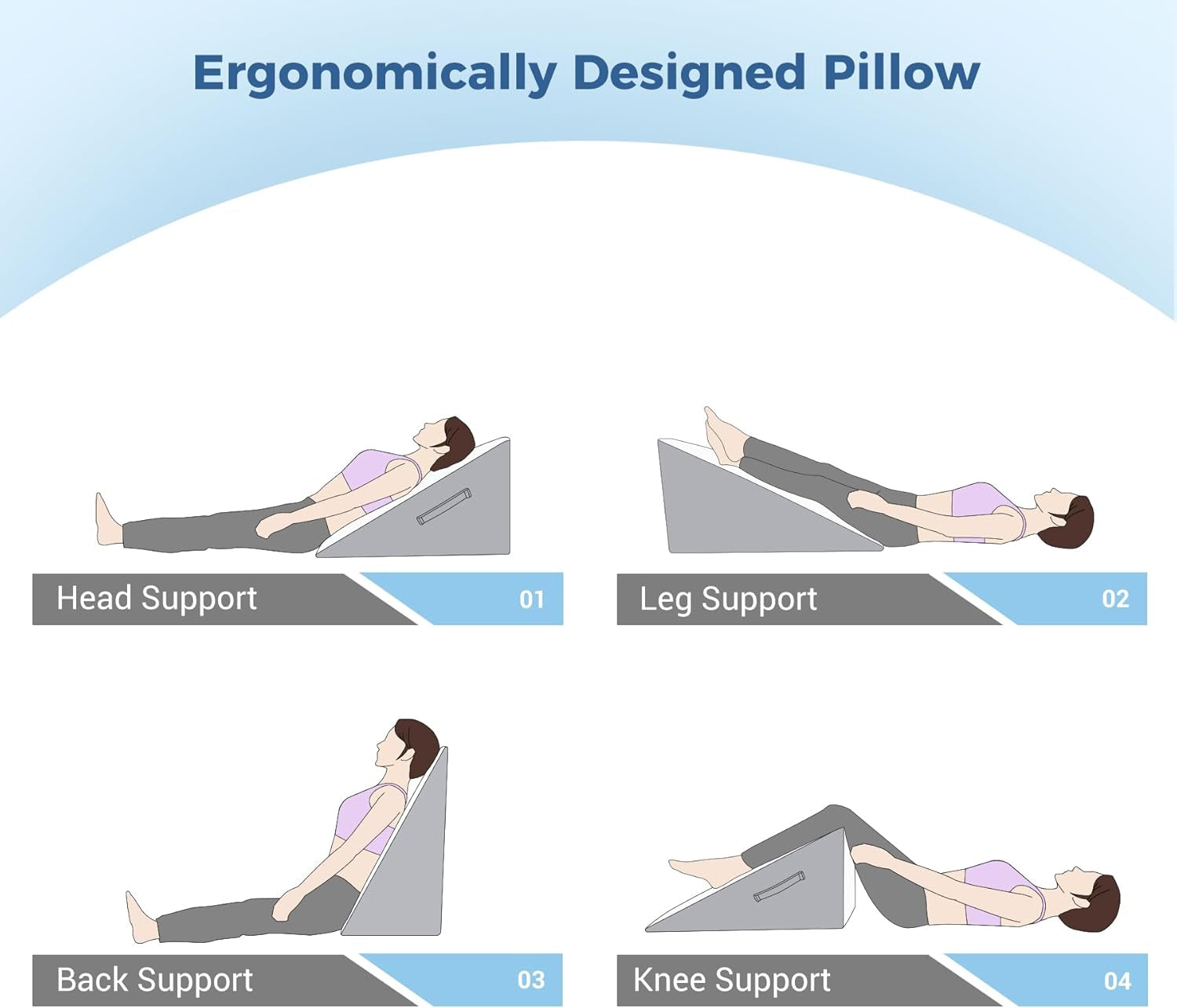 - „Wygodny rozmiar”: Rozmiar: Poduszka klinowa ma wymiary 56 x 56 x 30 cm i zapewnia wystarczające wsparcie i komfort dla różnych części ciała.