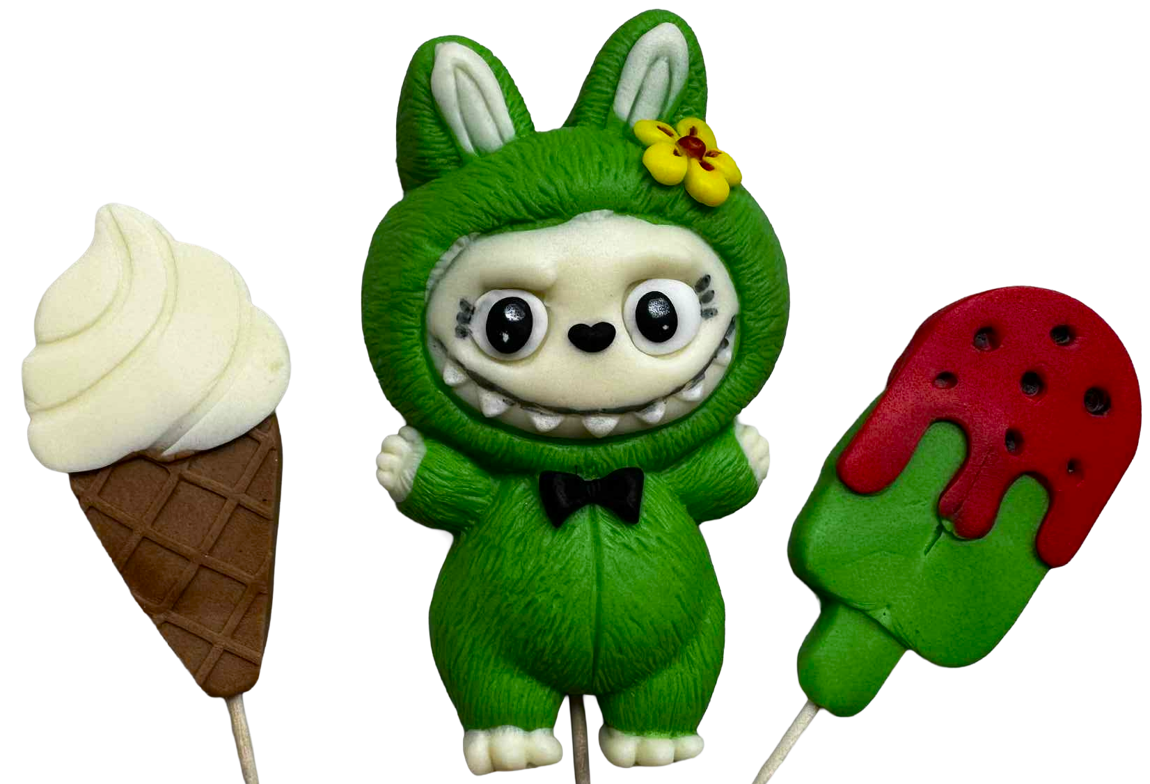 Niektóre dekoracje z jadalnej pasty cukrowej mogą zawierać elementy pomocnicze, takie jak przewody zasilające Lub kawałki impregnowanego drewna, używany wyłącznie do stabilizacji i mocowania.